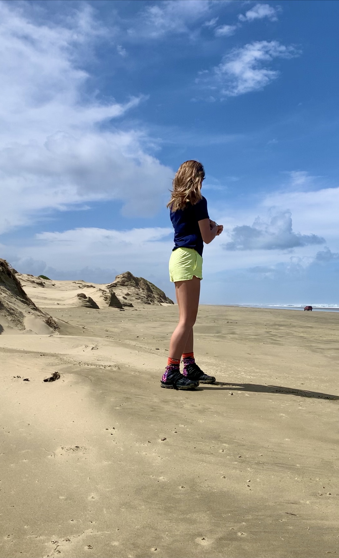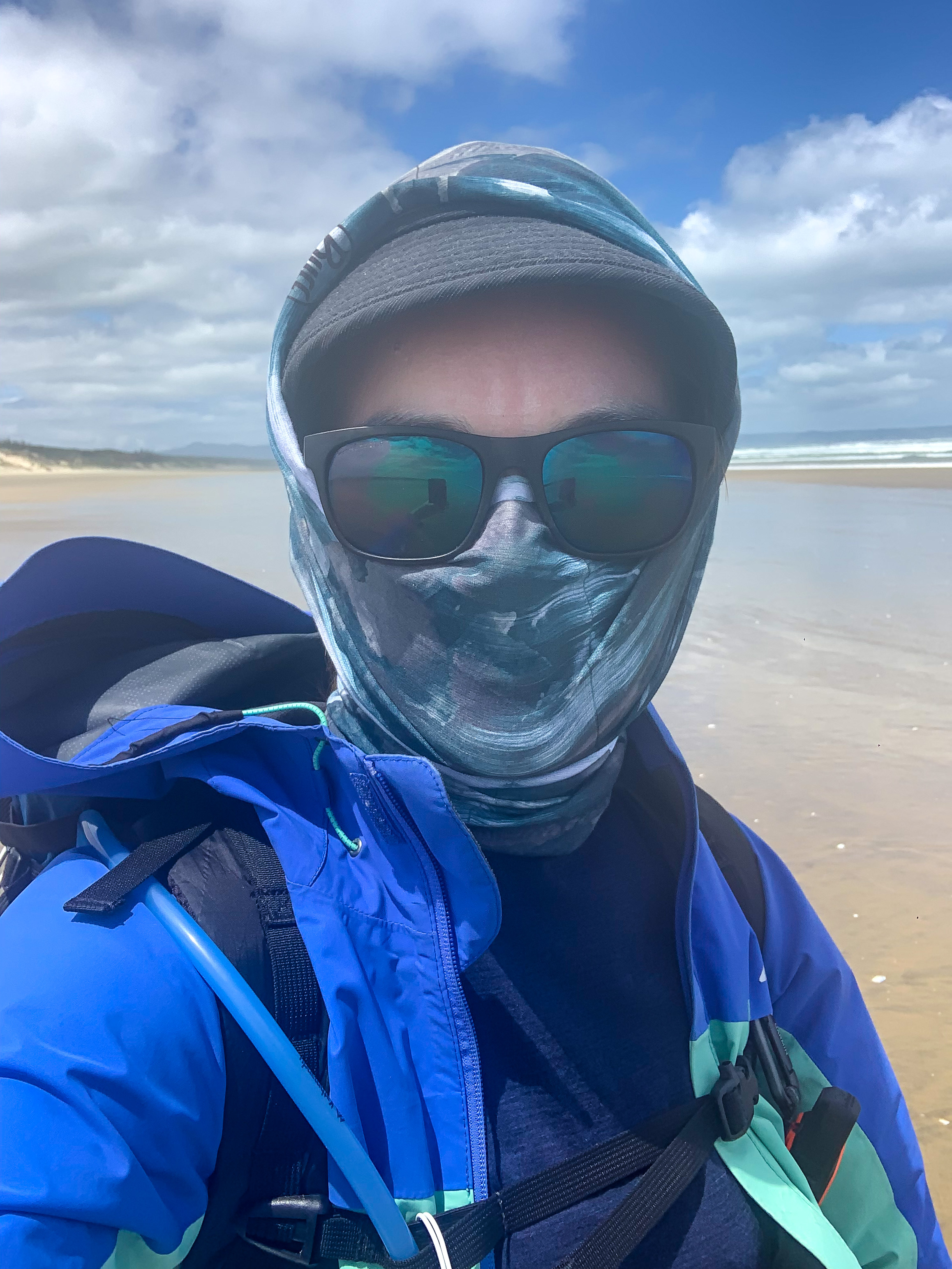 Over the course of the next three days I walked down the beach, waved at local fisherman, got rained on intermittently, danced to my appropriately named ‘Trail Mix’ playlist, developed these rather cool sunburn/windburn high sock tan lines, wore a rain jacket for rain, sun and strong southerly wind protection and had only a few meltdowns at how much further I had to walk along the sand.