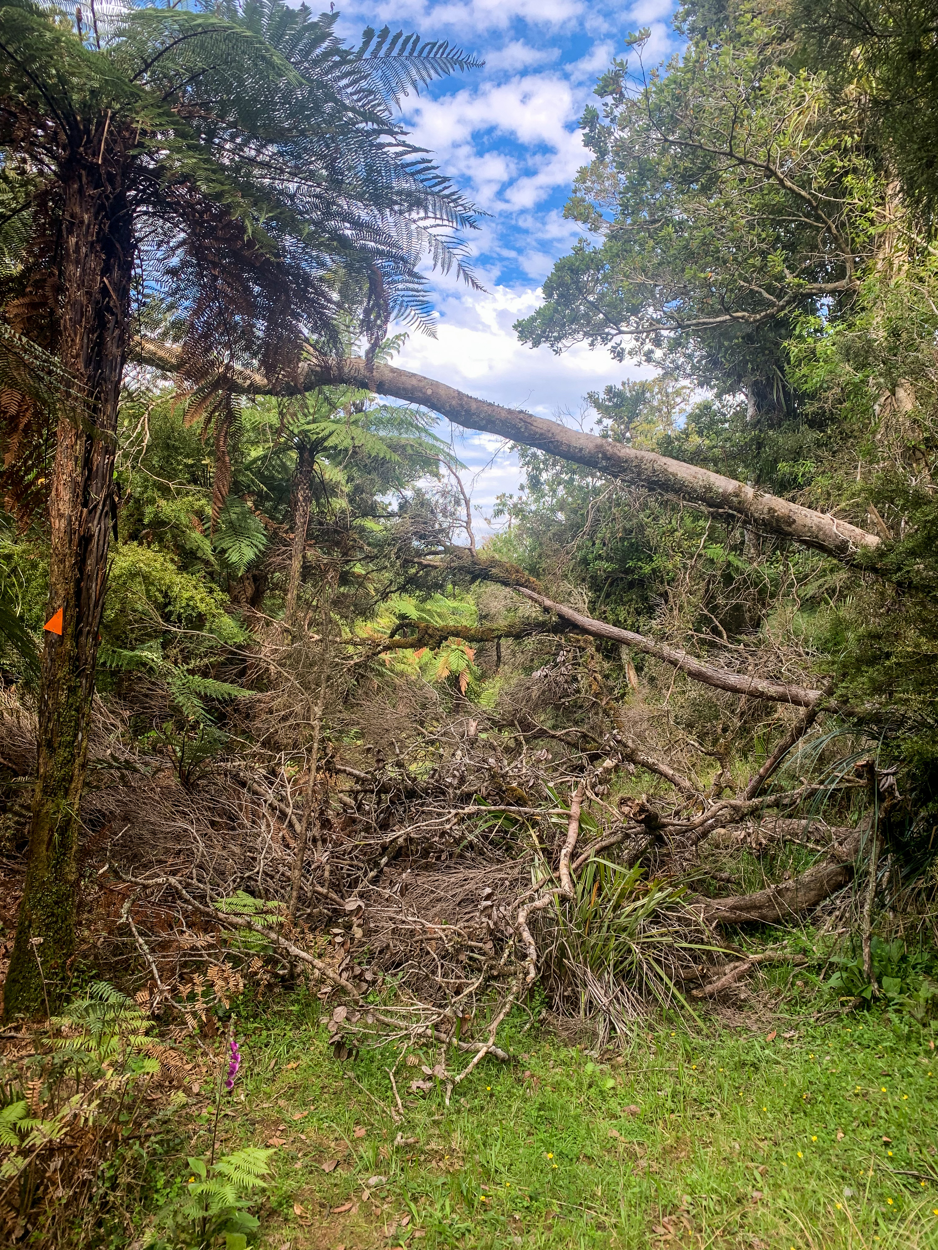 After this the trail continues through Puketi Forest, across fallen trees, paths lost to land slips and excessive mud puddles with spontaneous boardwalk and stair formations scattered in-between.