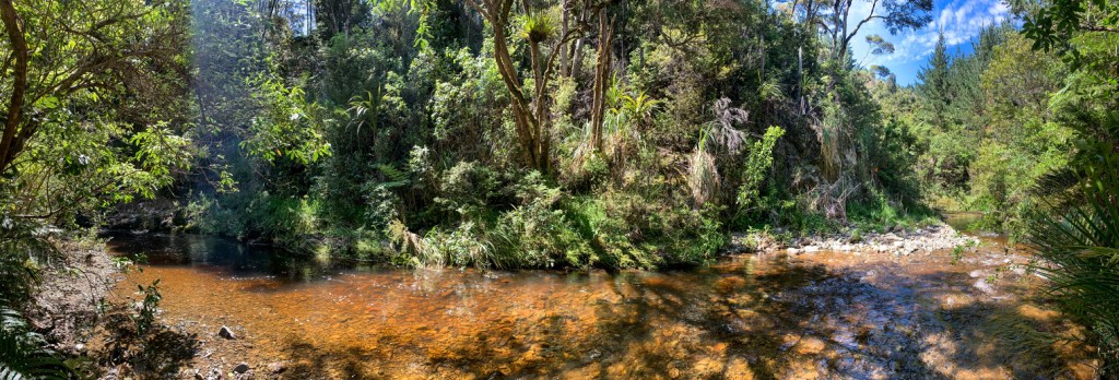 Mangapukahukahu Stream was a delight 🙂 In non-raining conditions and given the recent weather Northland had, the stream wasn’t overflowing; nil mangrove sludge, had a cooling effect on my usually overheating feet and is a coca cola colour. While the colour may deter some, I’m not judgy when it comes to my stream colours. Whilst I trotted through the stream criss-crossing between rock formations and waddling in ankle to shin sometimes knee high water, I felt like my river confidence had drastically improved and was really enjoying this style of hiking. Until the end.