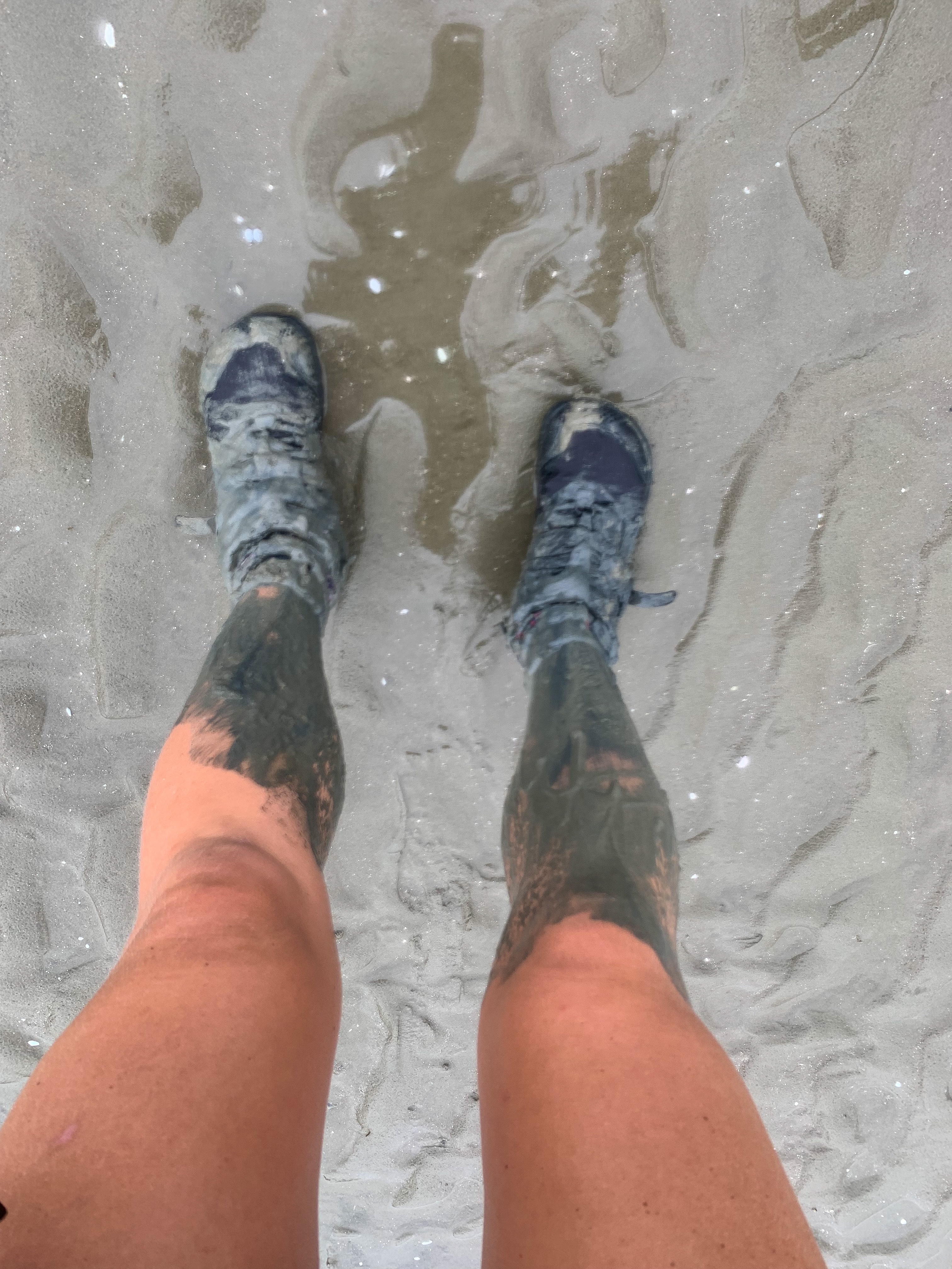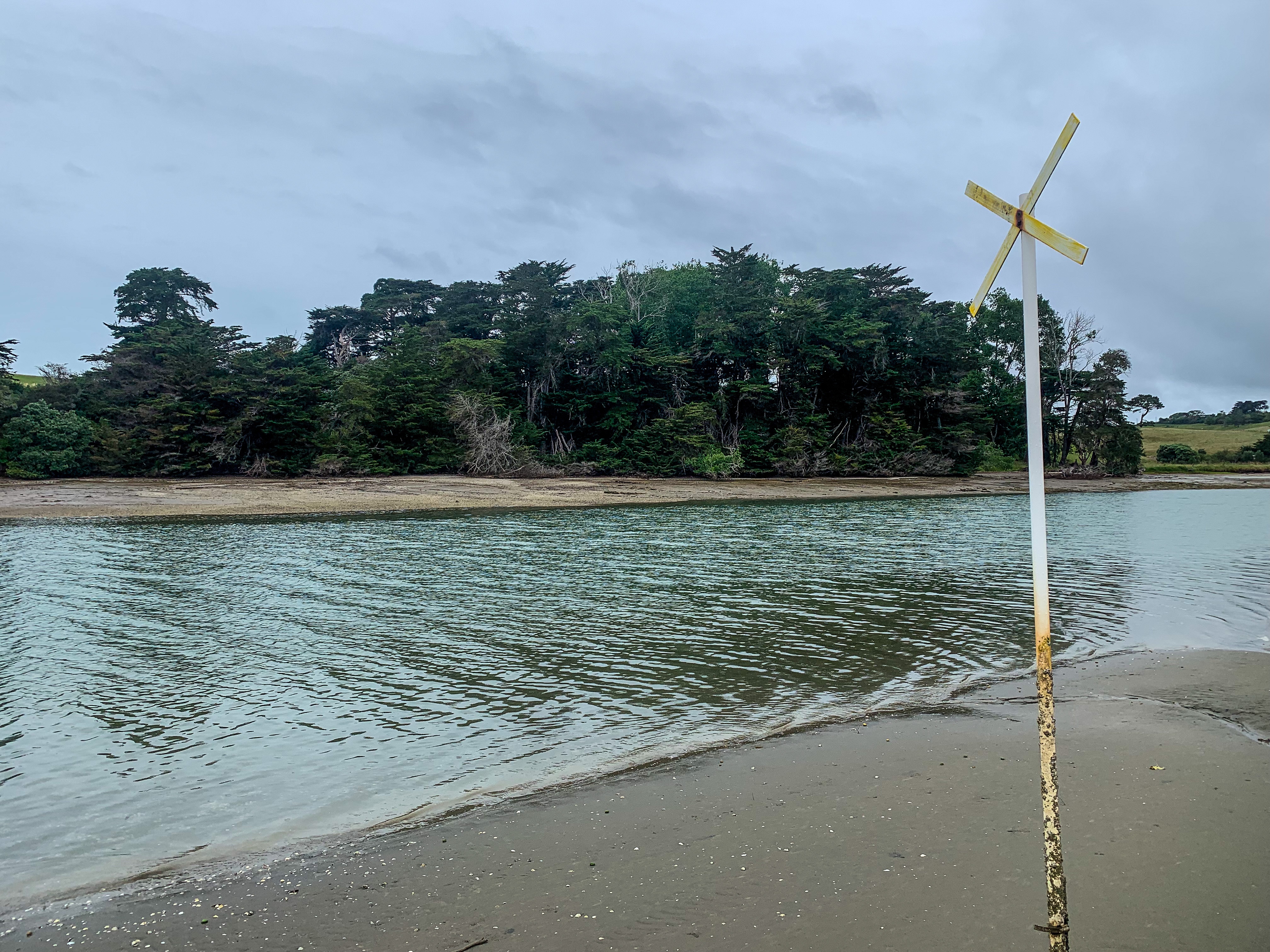 Careful trail note reading, triple checking tide times, confirming river crossing expectations with previous hikers and setting off early that morning to make it to the river twenty minutes before low tide did not prepare me for the crossing. Instead I was met with what appeared to be a deep (and in actual fact very deep) river mouth with the tide already flowing inland and me gradually sinking deeper into the mud. Counting the white markers from the river mouth (as the notes told me to do) I found the forth pole marked with a X and armed with my poles at the ready, Garmin in-reach attached to my person, bag unclipped and hoping everything was water tight started my crossing.