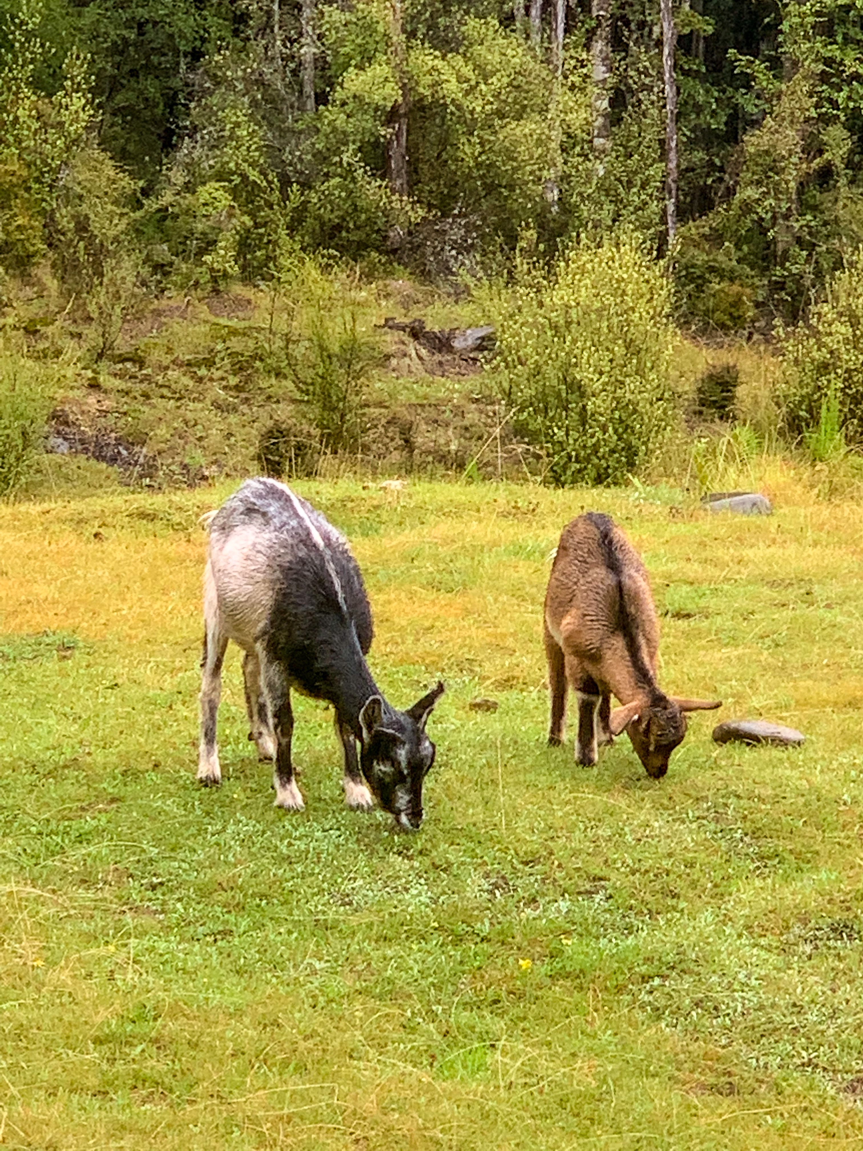Day two the rain sadly continued and the goats came out to enjoy the fresh wet grass which I enjoyed watching. Our trot past Middy Creek Hut remained wet but with every bridge crossing and sighting of the ever rising and powerful Pelorus River I was happy to be on the trail. From Middy to Rocks Hut the trail diverts off the Pelorus Track and instead follows an old mining route. We made it to The Rocks Lookout before the cloud completely set in and were treated to views of Mt Richmond and Mt Fell.