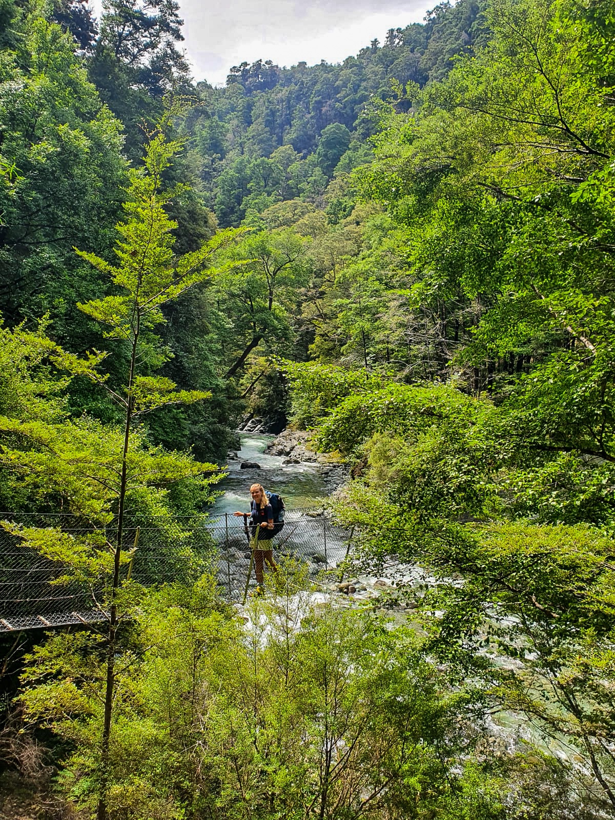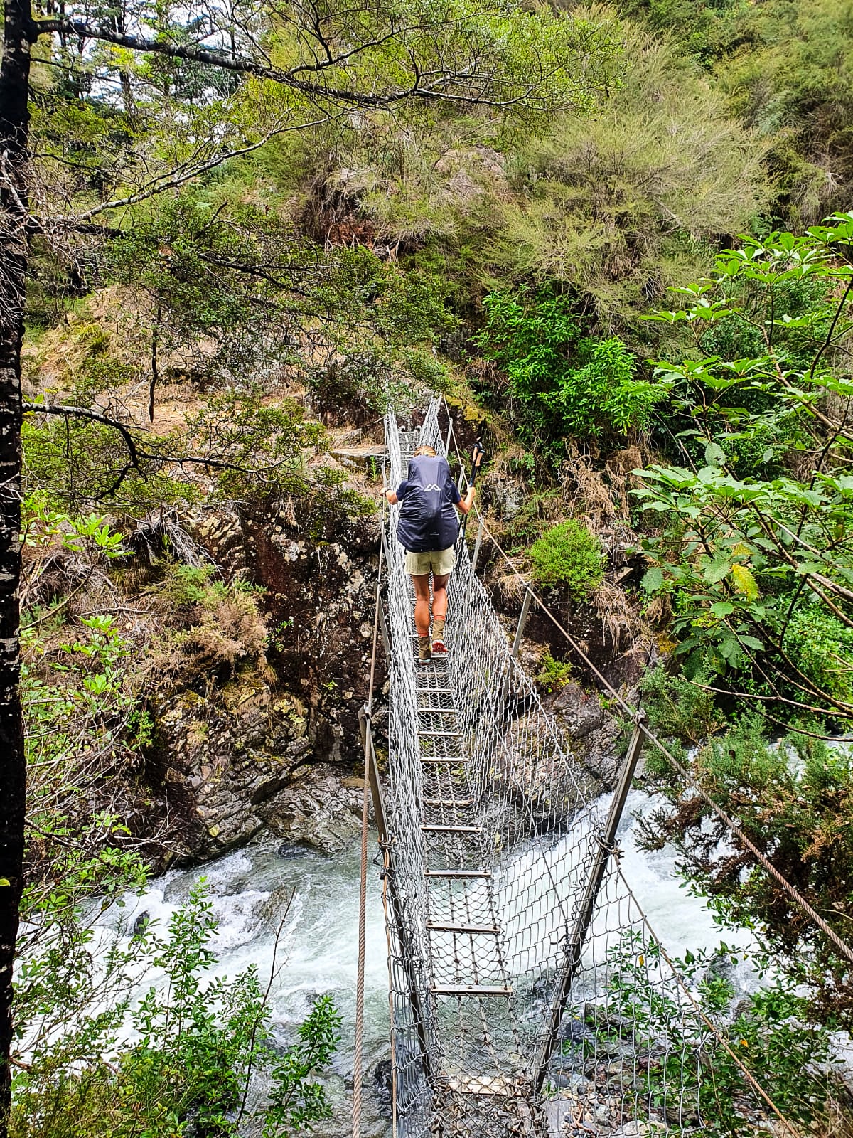 Day five started similarly to our previous mornings with an early ascent, this time of Mt Purple Top followed by a steep, steep descent en route to lunch, but not before stopping for second breakfast and elevensies. This was becoming quite the trail trotting and snacking routine in the Richmonds; morning climb, lunch descent and you guessed it, afternoon river crossings. All with two hourly, sometimes hourly if I could convince N.D muesli bar stops and go go juice sips. This day did not falter from the routine. After a lunch stop at Mid Wairoa Hut where N.D took a quick dip in the river (little did he know he would be swimming in it later rescuing my pole) we began our river crossing afternoon up to Top Wairoa Hut.