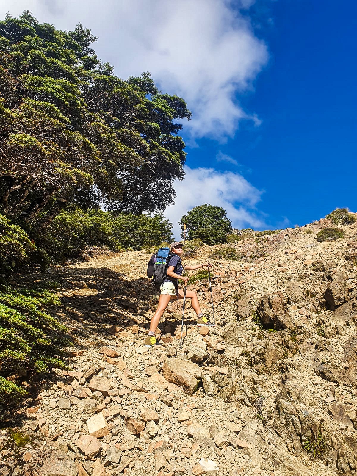 It was during this moment that I realised I could let this afternoon trot ruin the rest of my day or accept the fact that yes this is challenging and scary at times but that’s part of the Te Araroa trail! I want to broaden my hiking experience and gain new skills, there’s no harm in being scared of something you don’t know and by the end of this I should feel more confident at it. In the mean time I can take the track slower, I have N.D here as reassurance and without being on this track I wouldn’t see these amazing views 🙂 oh and N.D also got stung again by a wasp and is still smiling so I can at least try have a good time!