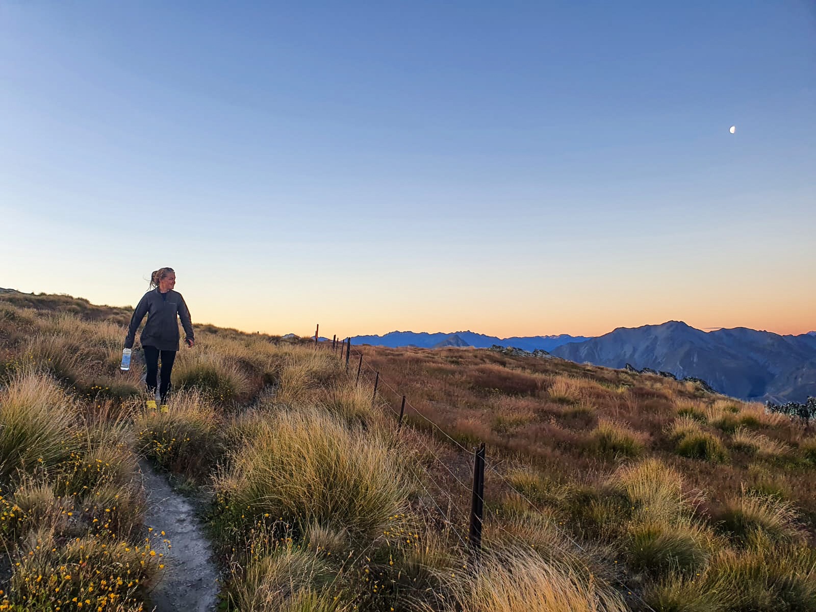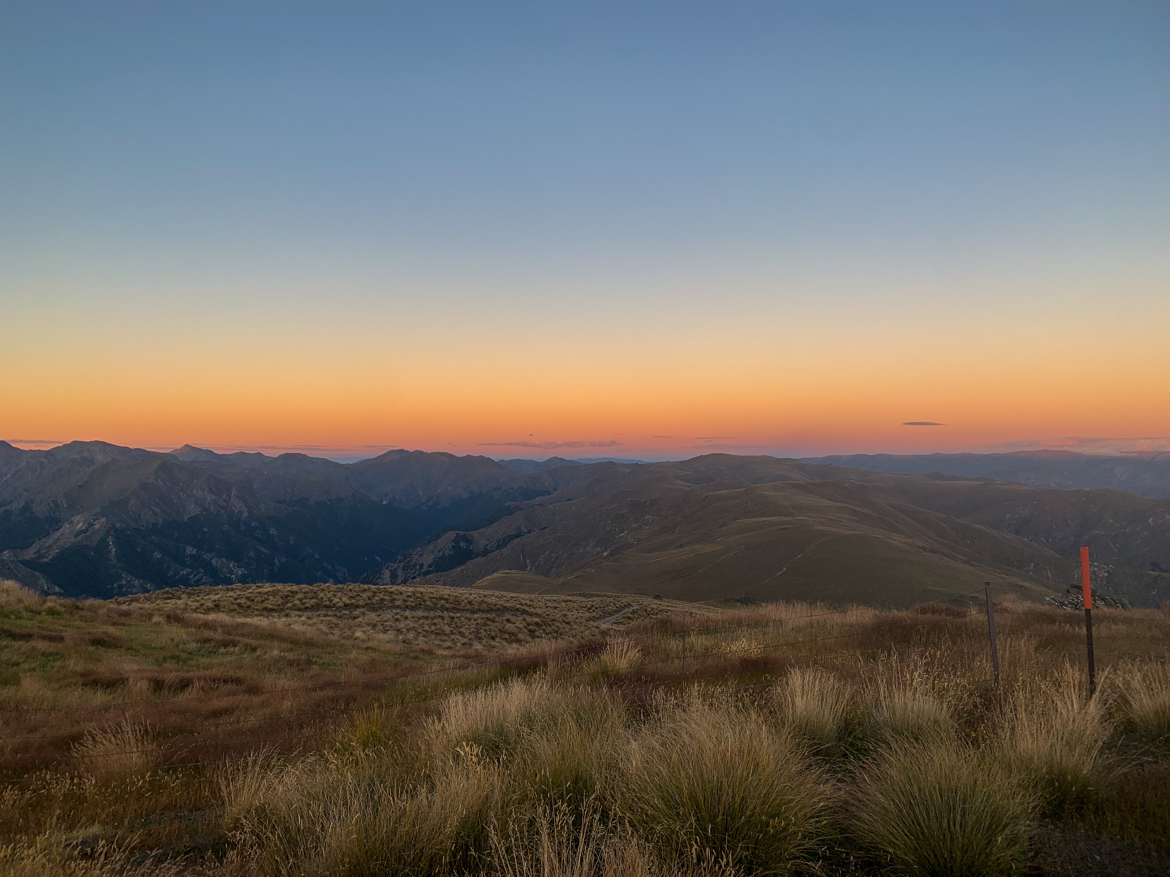 Continuing on trail the bikes were sadly switched out for our shoes and rivers crossings, mud and hills were tackled again. In particular Breast Hill at 1578 metres was summited, which at sunset offered beautiful views of Lake Hāwea and the Southern Alps, unfortunately while Mt Aspiring was in the distance I really couldn’t tell you which peak it was haha.