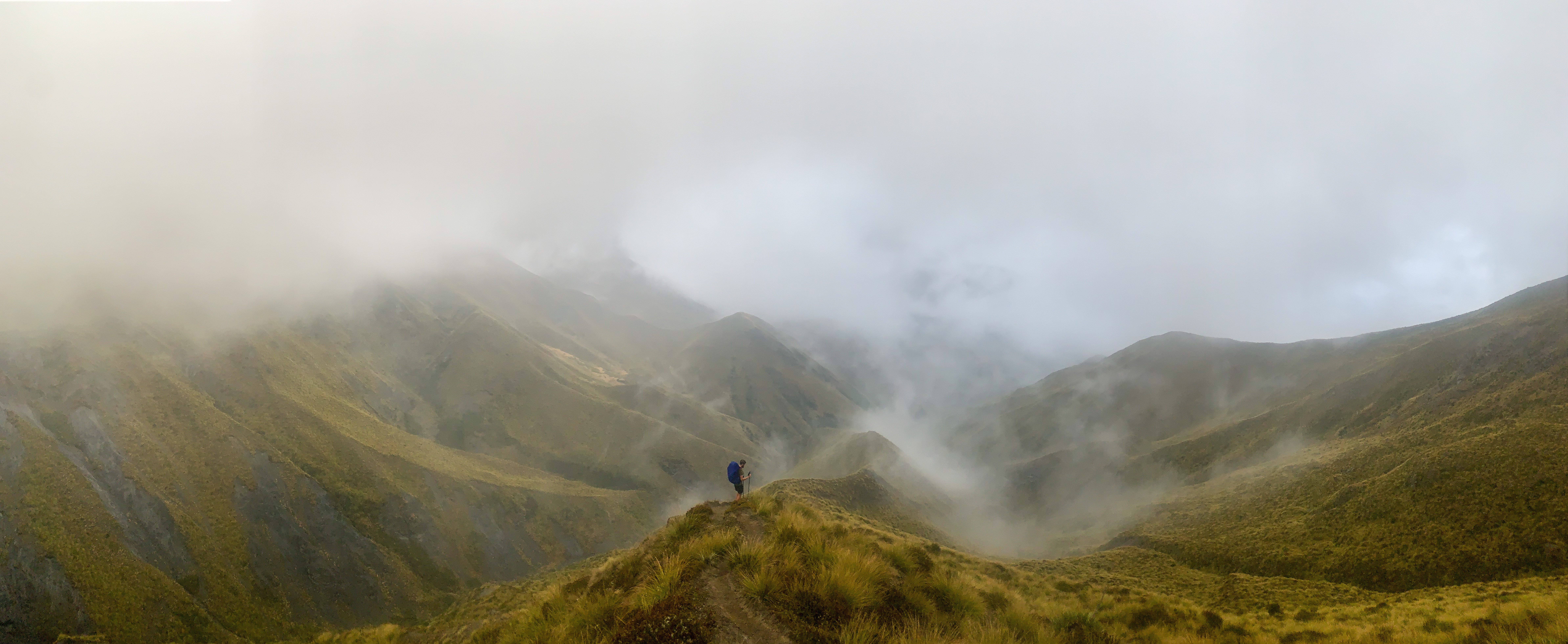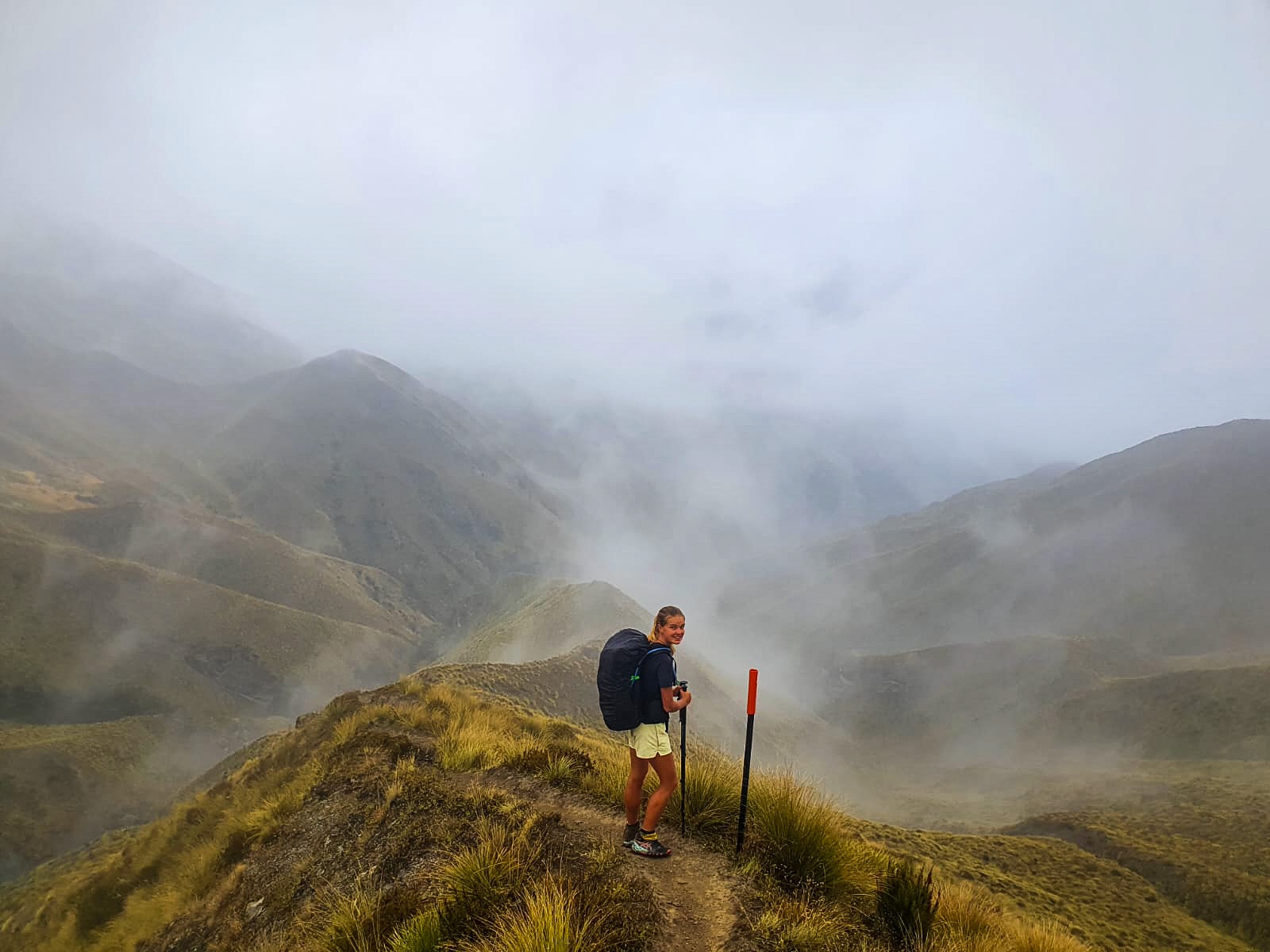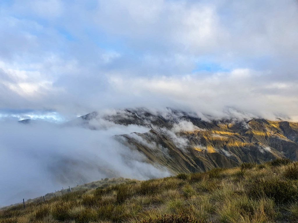 The next day started in thick fog and with a hill. Many many hills in fact were climbed that day. ๐ฆ Whether I was struggling to get up the hill or my knees were protesting on the descent, the day was long and arduous. To be honest I was kind of over it. Tired, dirty and feeling constantly uncomfortable in one way or another I was looking forward to our pre-arranged break in Queenstown. But trying to not let this get the best of me and wanting to enjoy Te Araroa for everything it throws at you I focused on things to look forward to (lunch, always lunch) and carried on trotting. By days end my mood had lifted, mucho snacks had been consumed and I was happy to be on trail at Roses Hut for the night. ๐