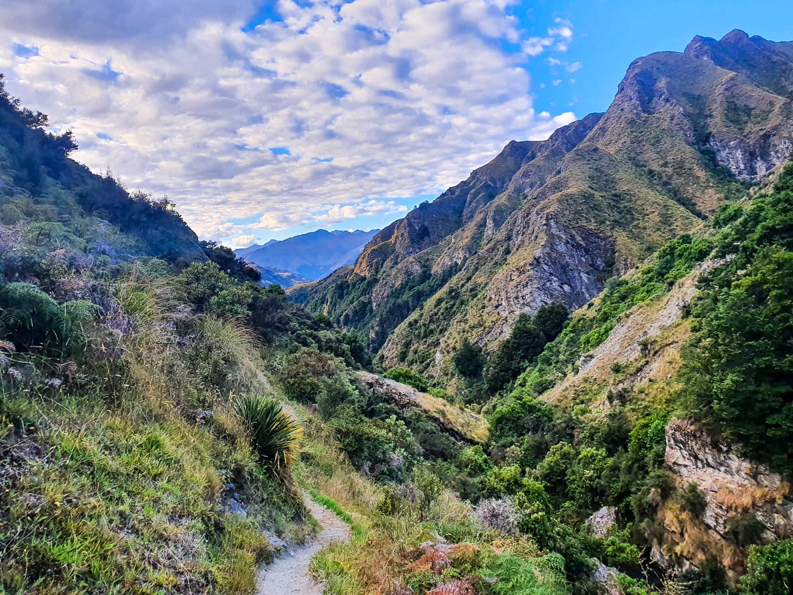 After a morning ascent of Roses Saddle, a high river track diversion through gorse bush and spiky plants, a sandfly invested lunch stop in Macetown and a long dirt road walk to Arrowtown we were both very glad when we could rest, put our feet up and N.D got a cold beer!