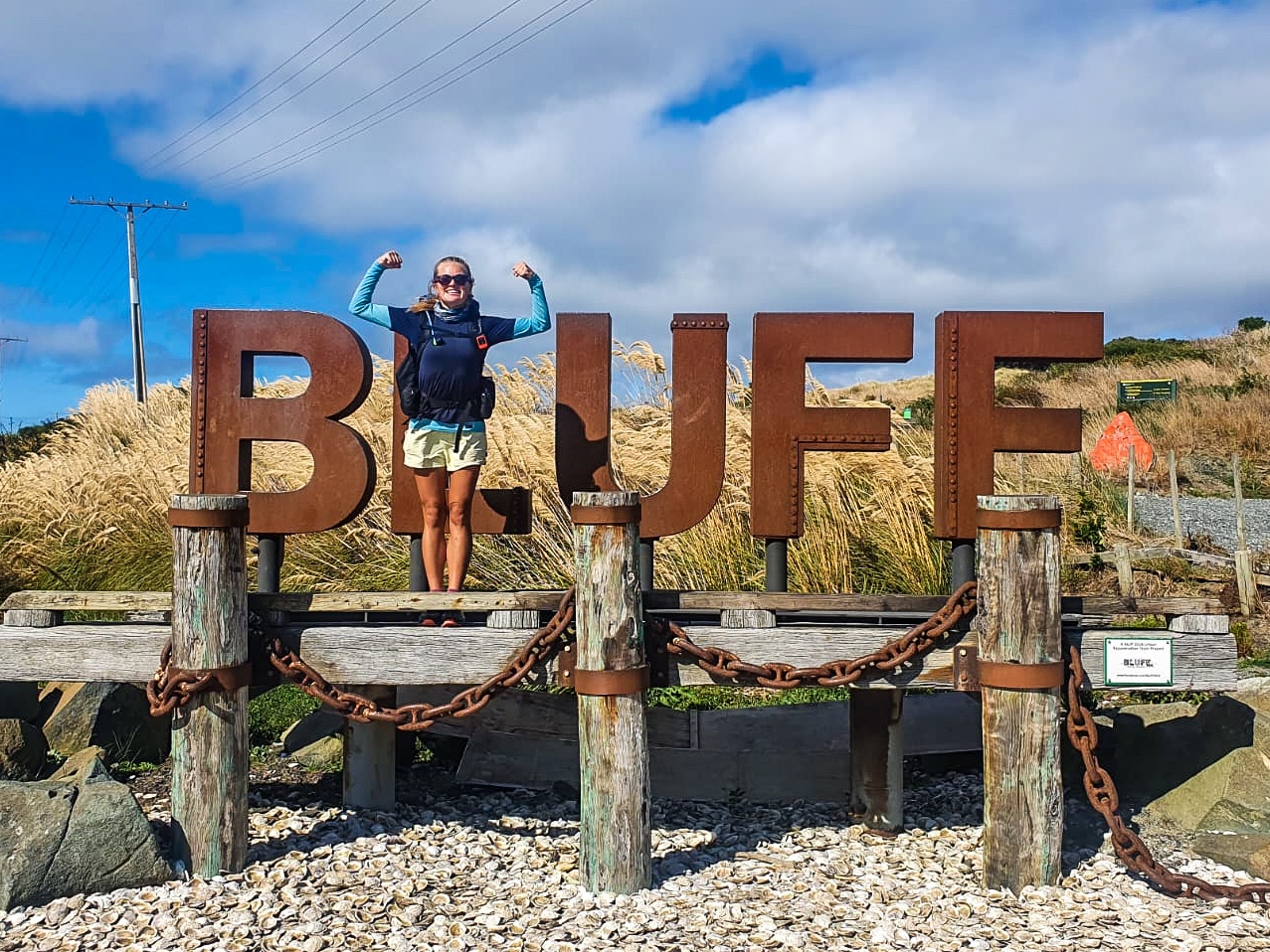 After leaving Invercargill we trotted in a westerly headwind all day along the estuary, state highway 1 and around Bluff Hill/Motupōhue to Stirling Point.