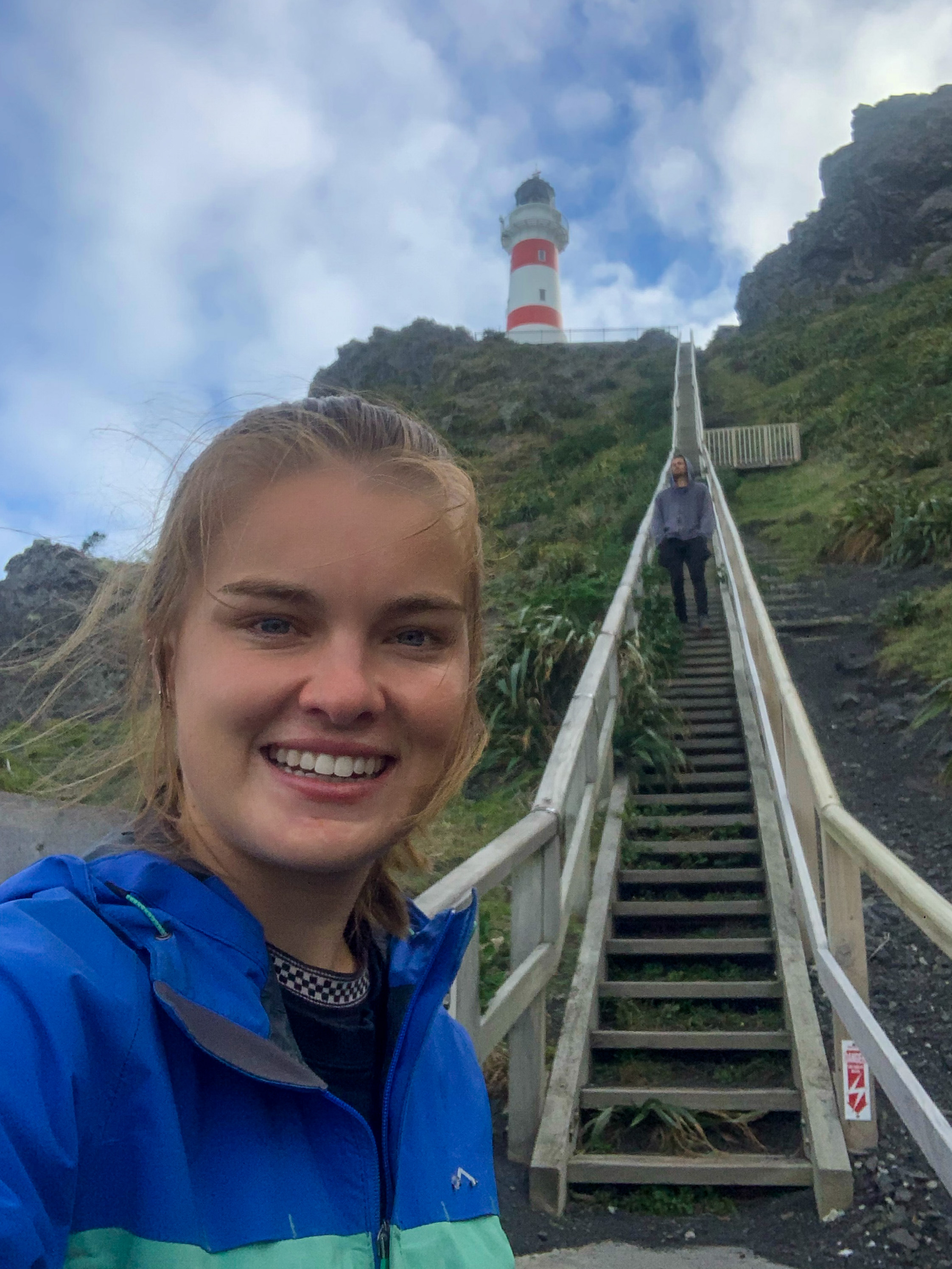 The following week we headed west and saw another popular lighthouse! Castlepoint provided more hiking trails around Deliverance Cove, swell for N.D to shred and a very fluffy feline for me to pat. 🙂