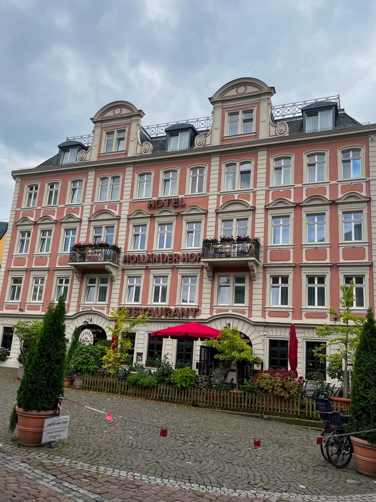 On leaving Cologne the morning sun was out and we were aboard another train, happy and headed down the Rhine river. The train ride was great; the views of castles, old towns and cathedrals along the Rhine beautiful and we had plenty of snacks. 🙂