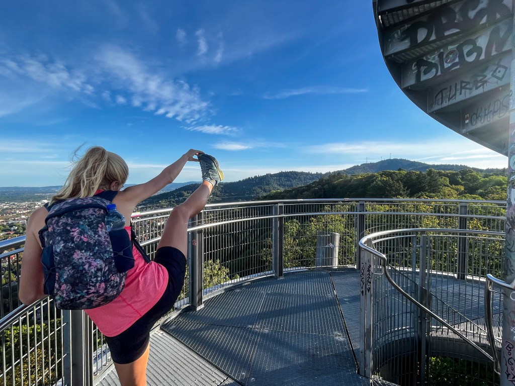 The next days saw us trot various trails in the Schwarzwald. We climbed to peaks of mountains and man made structures (Kanonenplatz, Ludwigshöhe, Aussichtsturm Schlossberg and Friedrichsturm) relaxed on grassy mounds and enormous benches, saw various wildlife from lizards to squirrels and I even had my first ever snake sighting!