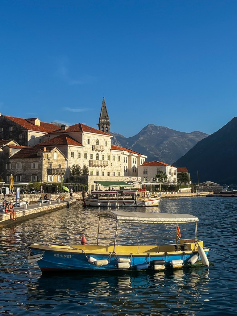 Our time in Perast was short and sweet. We wandered along the coastal path through the old town, enjoyed ice creams at the beach, basked in the few remaining hours of sunshine and then admired the shimmering light of a beautiful sunset. Well it was amazing until I bent to pat a cat and it pounced at me. I’m fine, the cats fine, though the fish the cat later gnawed at probably isn’t.