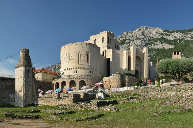 where the castle is stacked on top of itself like a cake tin: Kruja