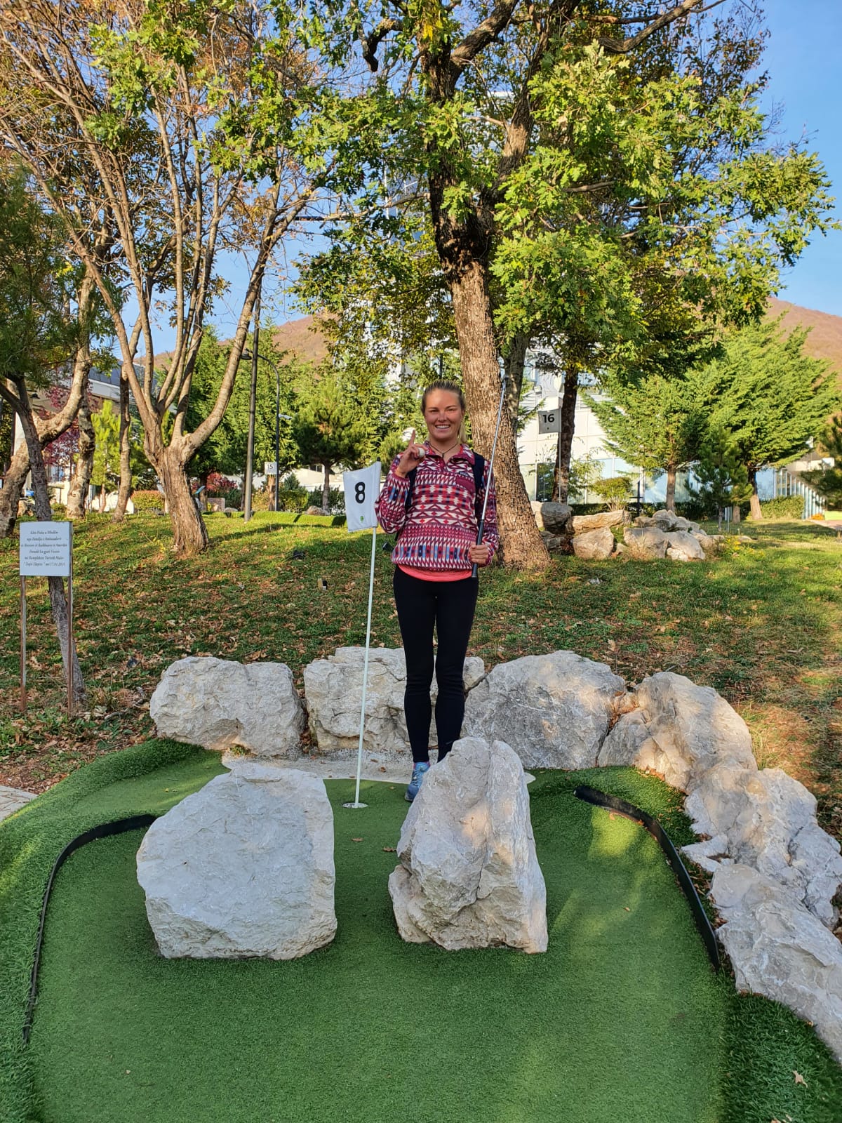 Dajti mini-golf; first 18 hole mini-golf course in Albania. You can guess who won verses who got the most hole in ones! ๐