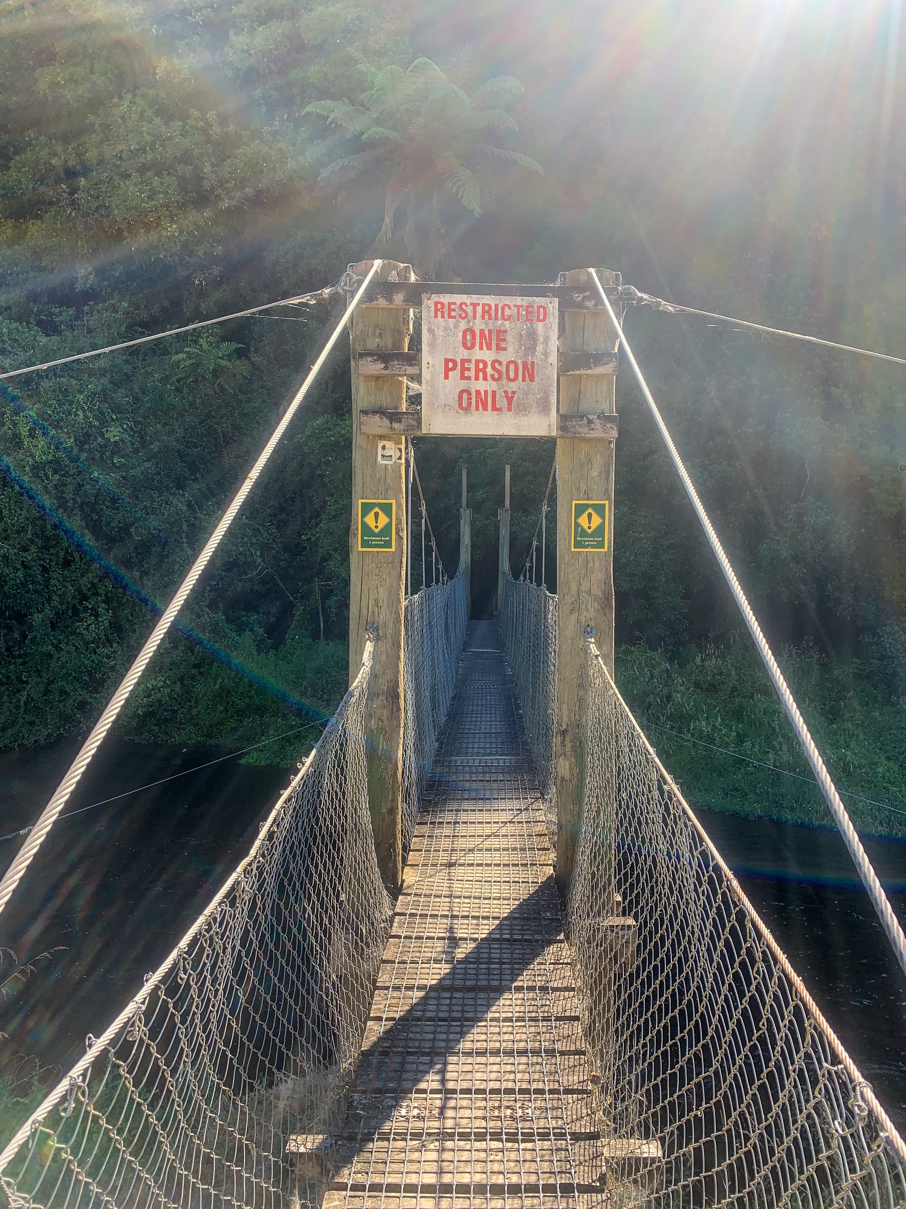 On leaving Piropiro the following morning, I climbed through tawa and tānekaha forest until reaching the bridge of all bridges. If it wasn’t already obvious I’m a bridge frothier. Maramataha Bridge at 141 metres was supposed to ‘take my breath away’ and it did. Not just because I was a little breathless after walking up the hill but I also have a fear of heights. Excitement over the bridge was definitely outweighing my height fear though! Well mostly