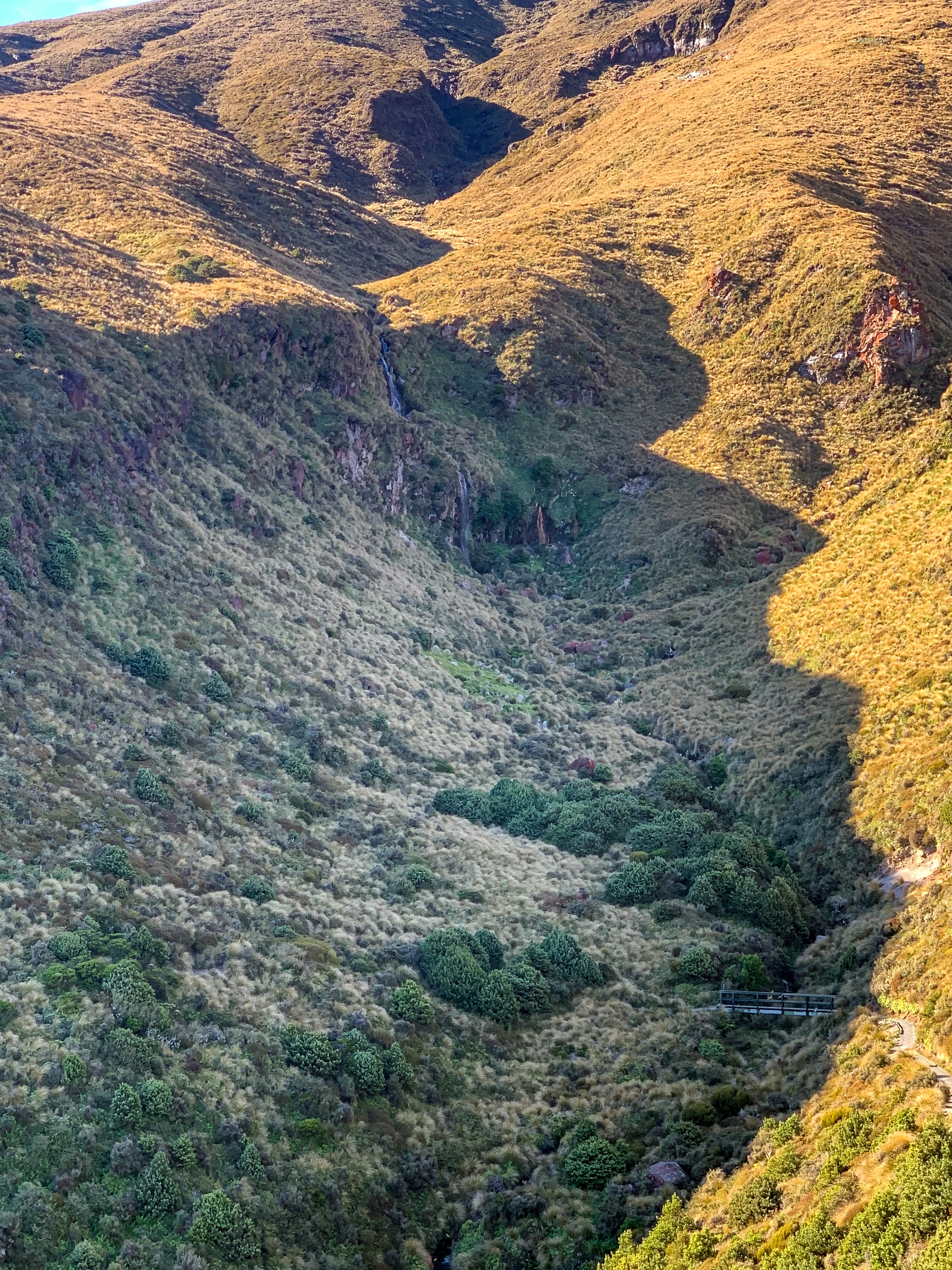 I continued on down the ridge to the South Crater, through the Mangatepopo Saddle between Mt Ngāuruhoe and Tongariro, down the Devil’s Staircase and to the top of the Mangatepopo Valley. Turning back every 5-10 minutes as I walked the Mangatepopo Track, I stared up in amazement at not just what I had physically achieved today, yesterday and everyday since I started walking Te Araroa but also at how I felt!