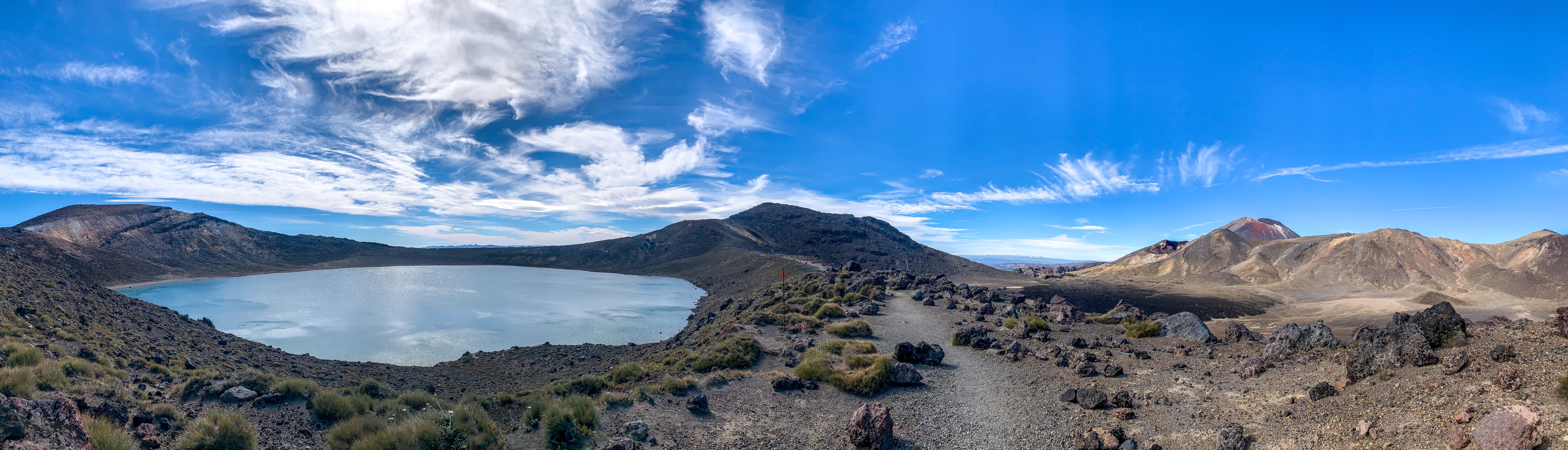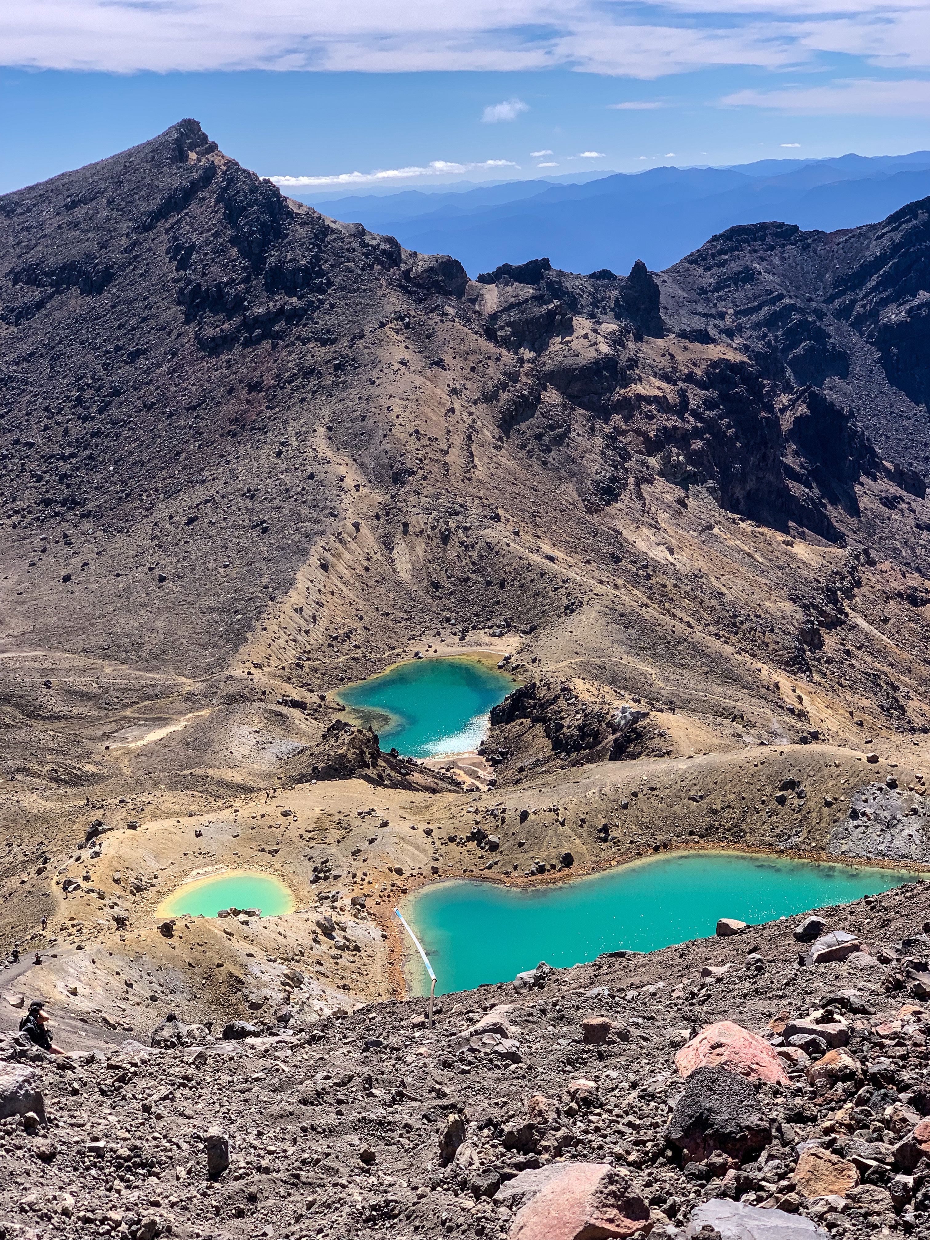 As the track meandered its way through tussock slopes, past Ketetahi Springs, over bridges and rock hopping spots I couldn’t help but keep looking up at the shear size of the mighty maunga. Around the North Crater to the Blue Lake/Te Wai Whakaata o te Rangihiroa I was met with crystal clear blue water and a strong headwind. But after seeing the glimmering Emerald Lakes/Ngarotopounamu ahead no wind chill could hold back my amazement!