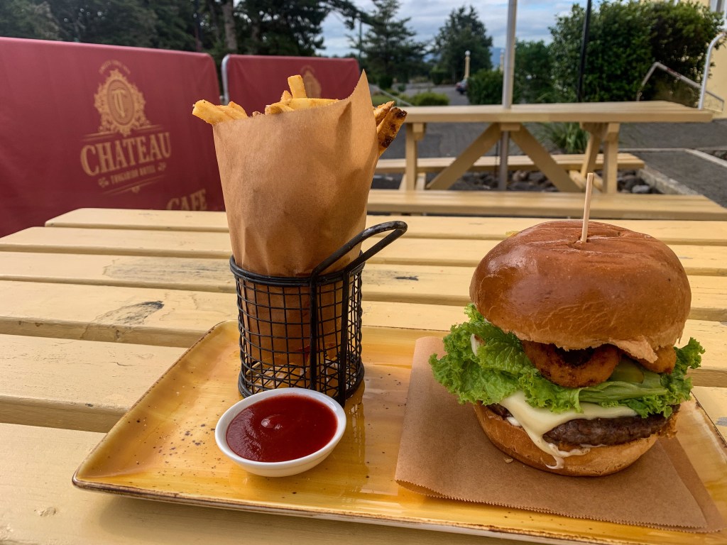 To celebrate a wonderful day I stayed in a bed at the Whakapapa Holiday Park and treated myself to burger and fries at The Chateau.